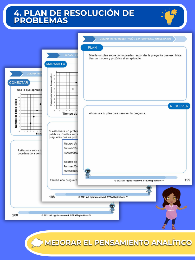 Proceso de Resolución de Problemas: Cada unidad presenta a los estudiantes un proceso de resolución de problemas que provoca curiosidad y mejora las habilidades de pensamiento analítico.