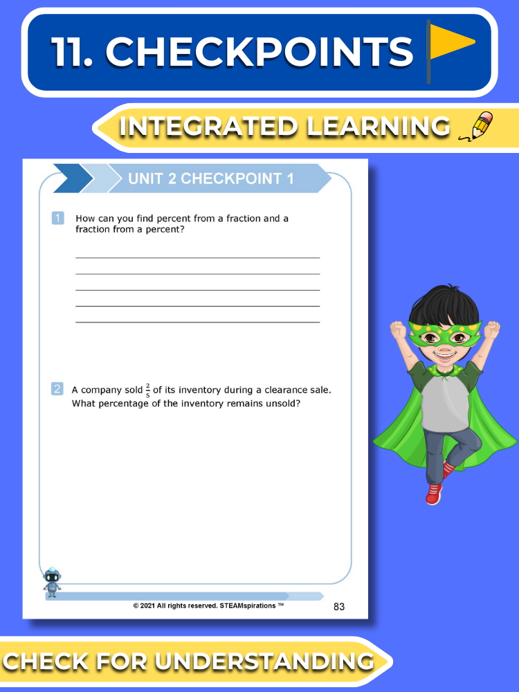 - Checkpoints: At the end of each lesson, checkpoints feature a writing exercise and a problem-solving question to assess comprehension and consolidate learning.