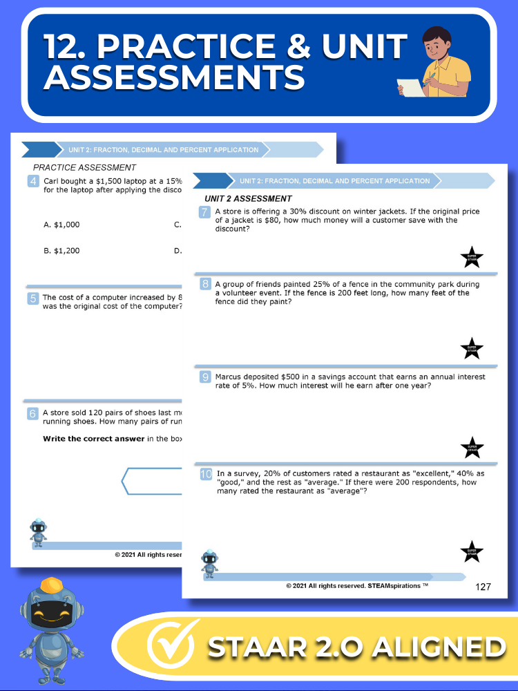 Practice and Unit Assessments: Reflecting the STAAR test's rigor, each unit includes a practice assessment and a comprehensive unit assessment featuring STAAR 2.0 questions.