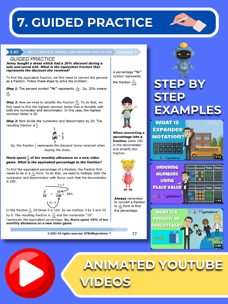 - Guided Practice: Every unit includes guided practice sections designed to effectively teach new TEKs/Skills. These can be utilized alongside our engaging animated instructional videos, enhancing the learning experience.