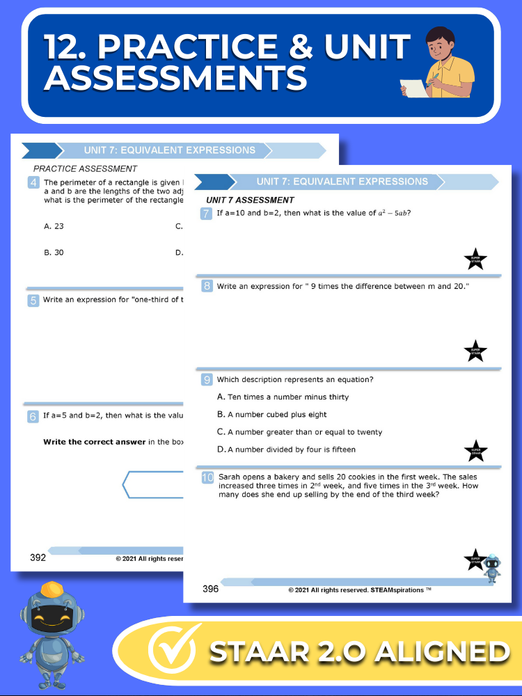 Practice and Unit Assessments: Reflecting the STAAR test's rigor, each unit includes a practice assessment and a comprehensive unit assessment featuring STAAR 2.0 questions.