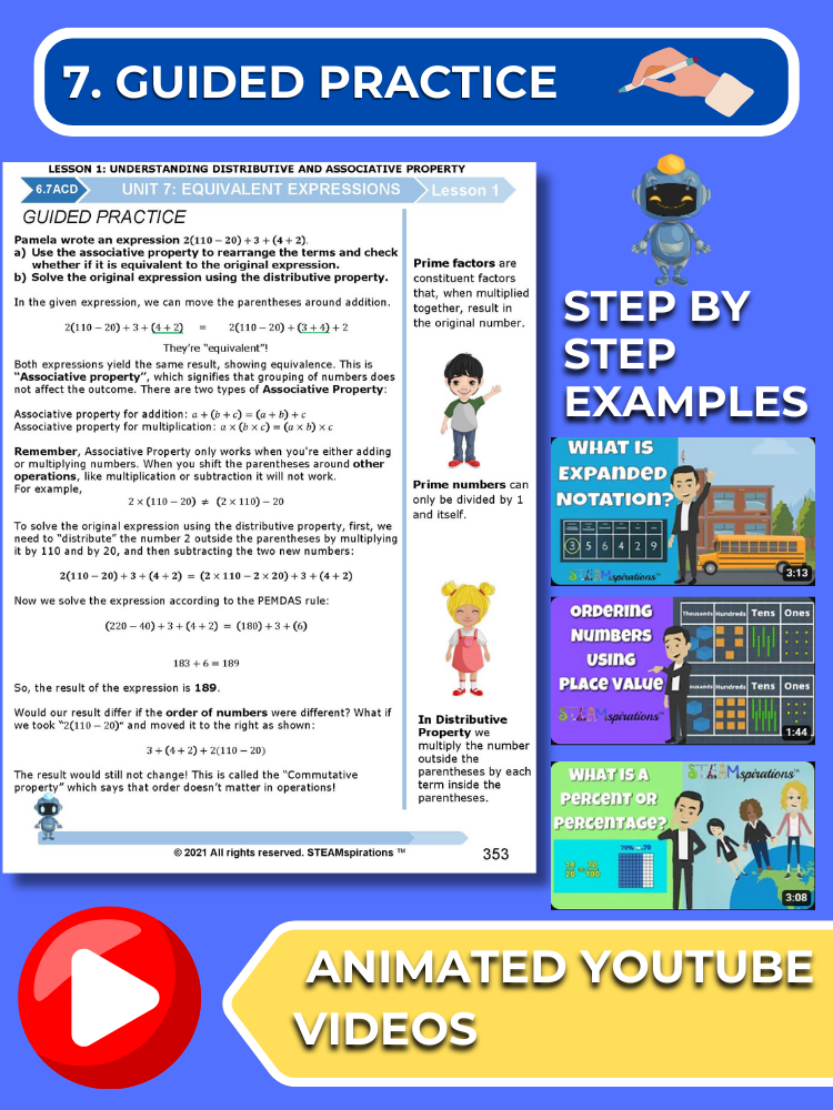 - Guided Practice: Every unit includes guided practice sections designed to effectively teach new TEKs/Skills. These can be utilized alongside our engaging animated instructional videos, enhancing the learning experience.