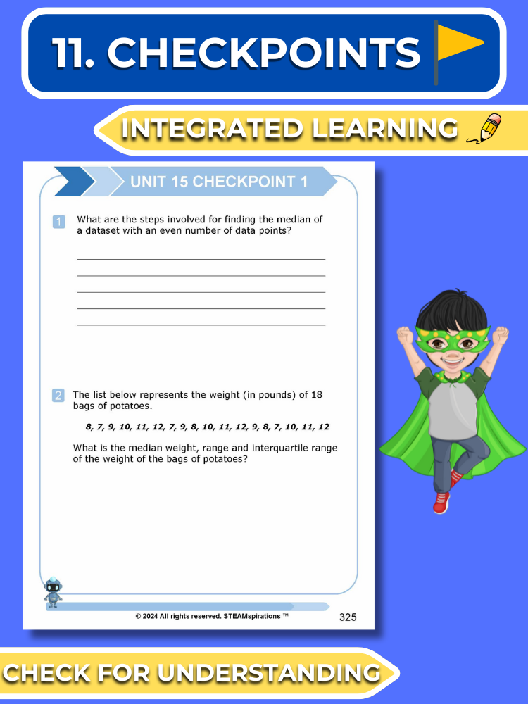 - Checkpoints: At the end of each lesson, checkpoints feature a writing exercise and a problem-solving question to assess comprehension and consolidate learning.