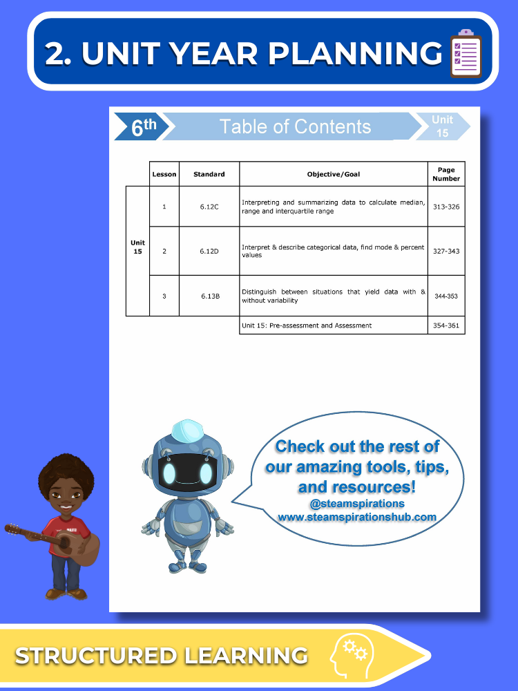 - Unit Year Planning: Our curriculum breaks down each TEK into manageable segments, scaffolding learning for complete mastery. This methodical approach allows students to fully understand each part of the TEK as it is taught throughout the lessons, making the process more straightforward for educators.