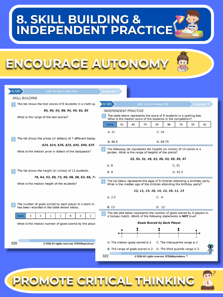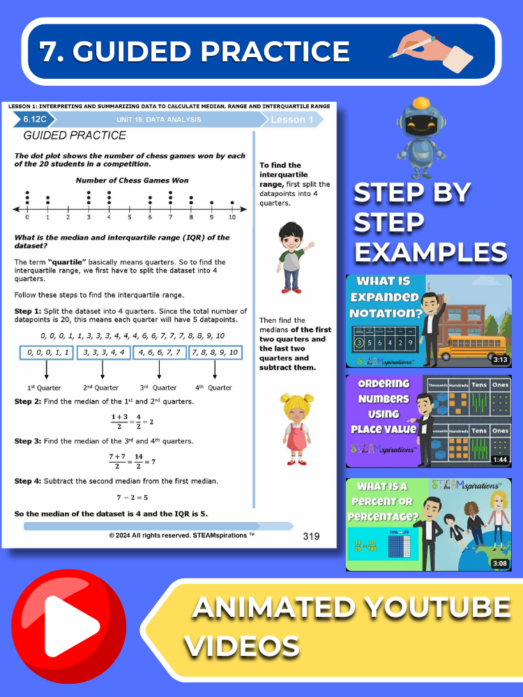 - Guided Practice: Every unit includes guided practice sections designed to effectively teach new TEKs/Skills. These can be utilized alongside our engaging animated instructional videos, enhancing the learning experience.