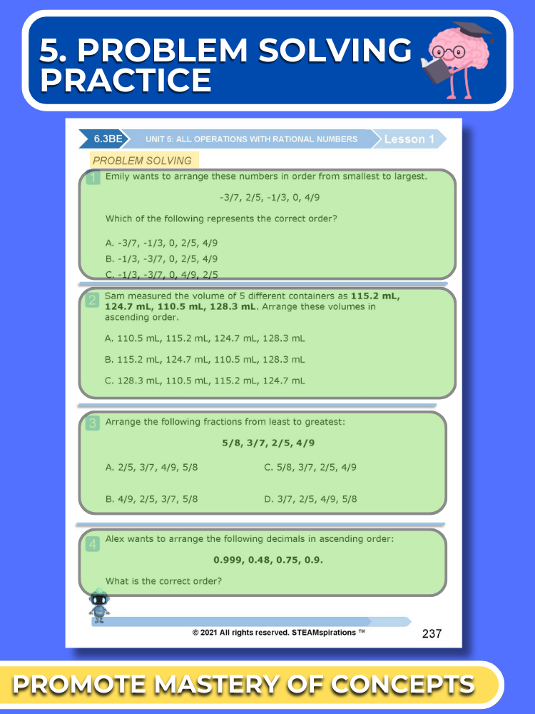 - Problem Solving Process: Each unit introduces students to a thought-provoking problem-solving process that stirs curiosity and enhances analytical thinking skills.