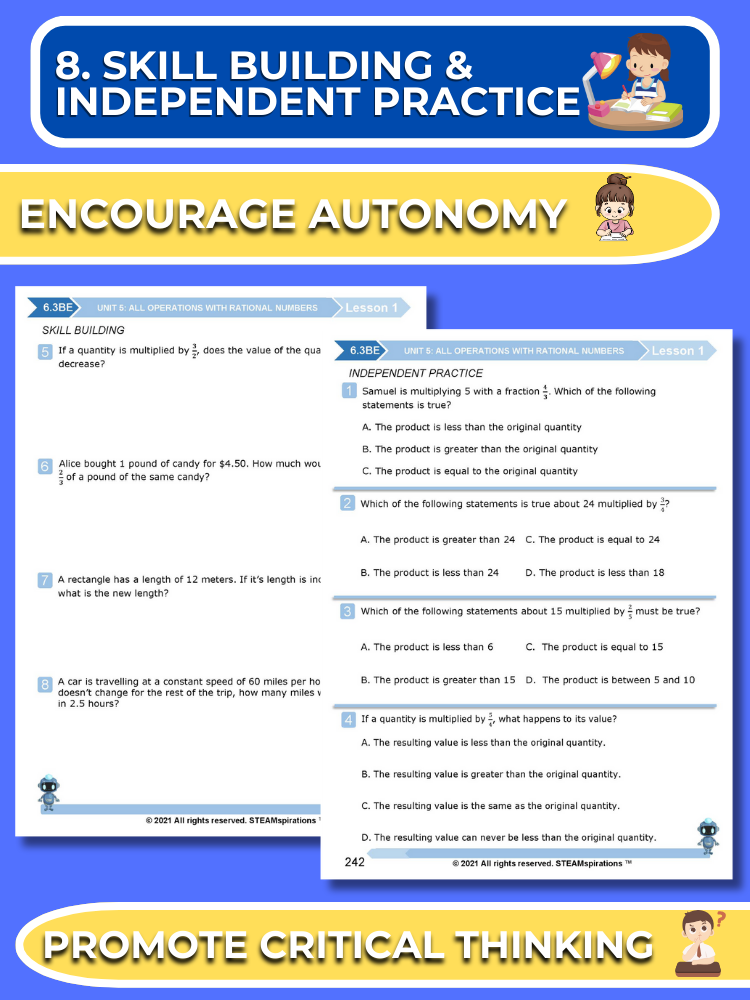 - Guided Practice: Every unit includes guided practice sections designed to effectively teach new TEKs/Skills. These can be utilized alongside our engaging animated instructional videos, enhancing the learning experience.