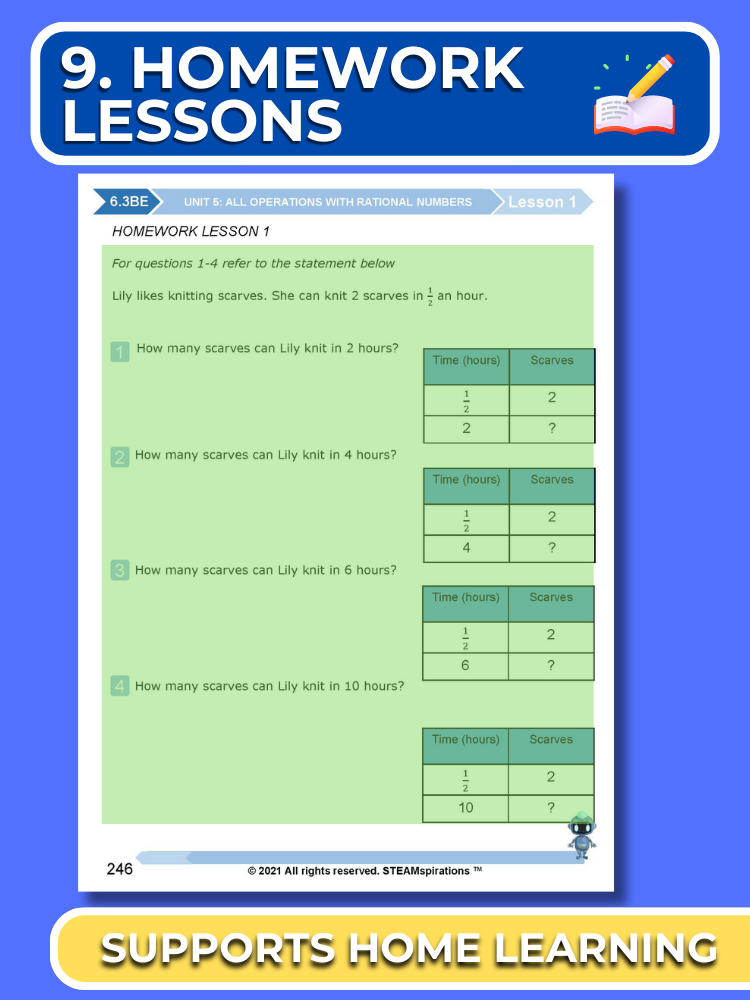 - Skill Building/Independent Practice: Lessons are designed to strengthen students’ math skills and problem-solving abilities through word problems, including STAAR 2.0 questions marked by a small star symbol.