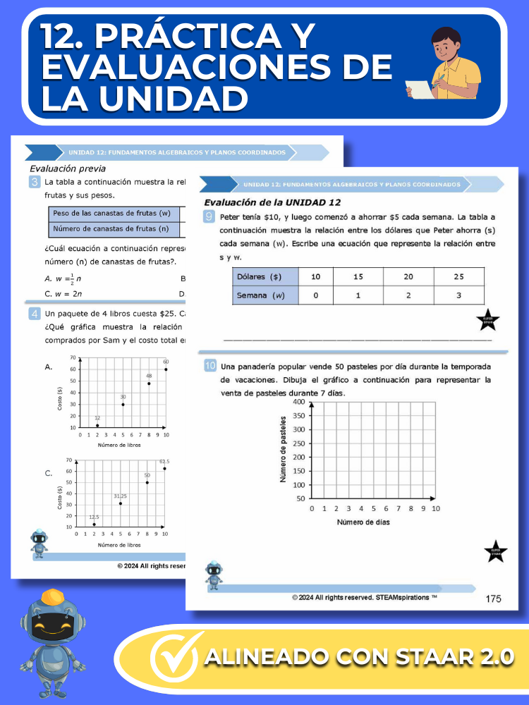 - Prácticas y Evaluaciones de Unidades: Reflejando el rigor del examen STAAR, cada unidad incluye una evaluación de práctica y una evaluación de unidad integral con preguntas STAAR 2.0.