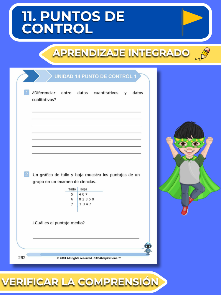 - Puntos de Control: Al final de cada lección, los puntos de control incluyen un ejercicio de escritura y una pregunta de resolución de problemas para evaluar la comprensión y consolidar el aprendizaje.