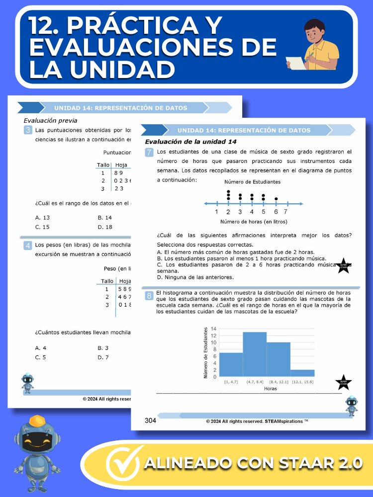 - Prácticas y Evaluaciones de Unidades: Reflejando el rigor del examen STAAR, cada unidad incluye una evaluación de práctica y una evaluación de unidad integral con preguntas STAAR 2.0.