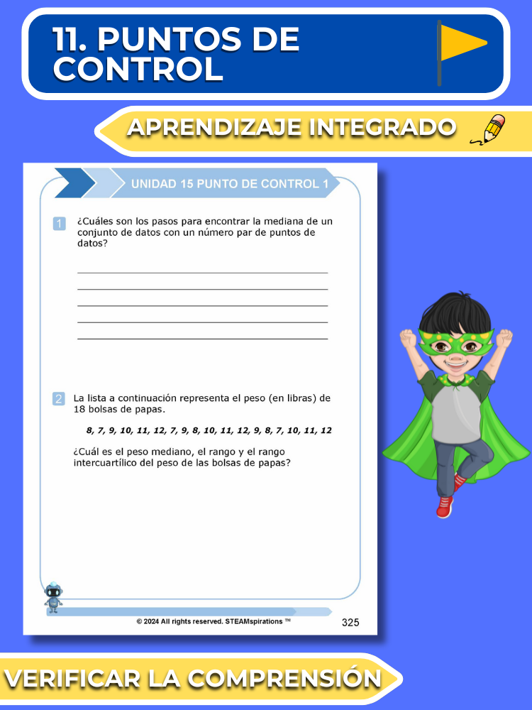 - Puntos de Control: Al final de cada lección, los puntos de control incluyen un ejercicio de escritura y una pregunta de resolución de problemas para evaluar la comprensión y consolidar el aprendizaje.