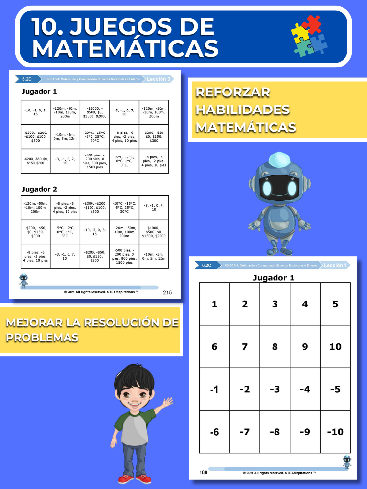¡Mathtástico! 6to Grado Unidad 4: Ordenando y Comparando Números Racionales e Enteros - Libro Electrónico