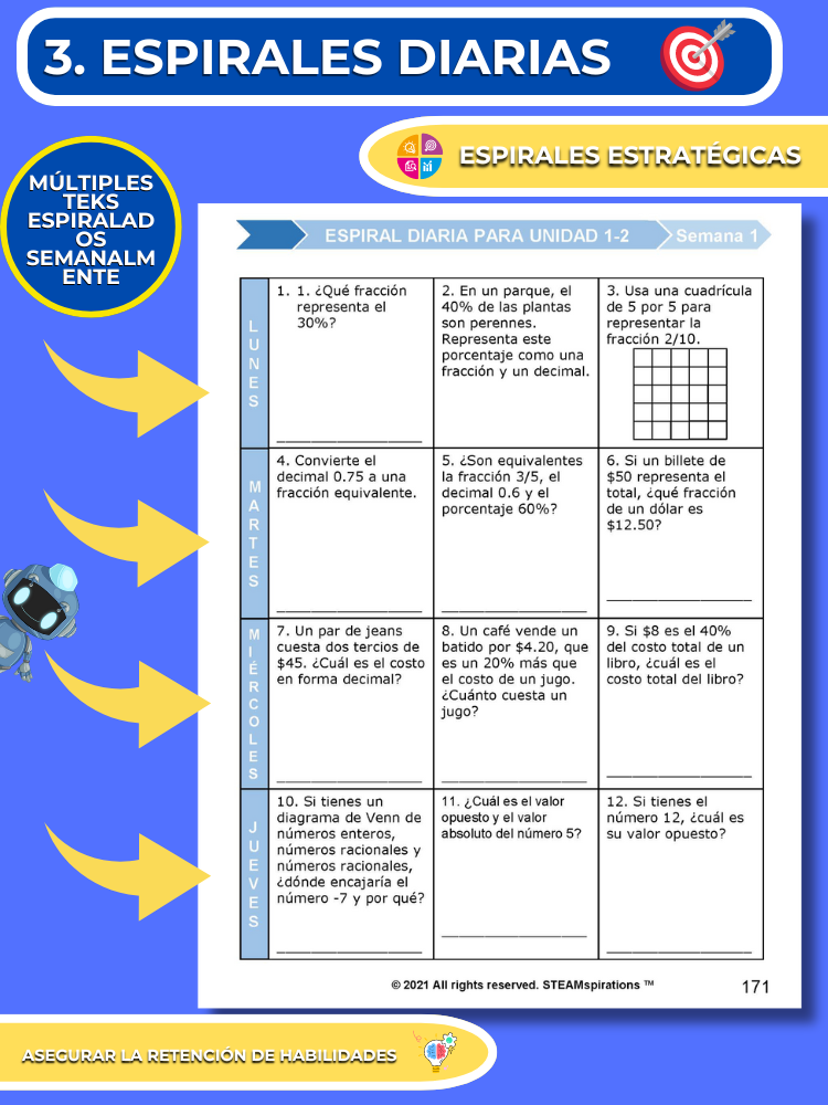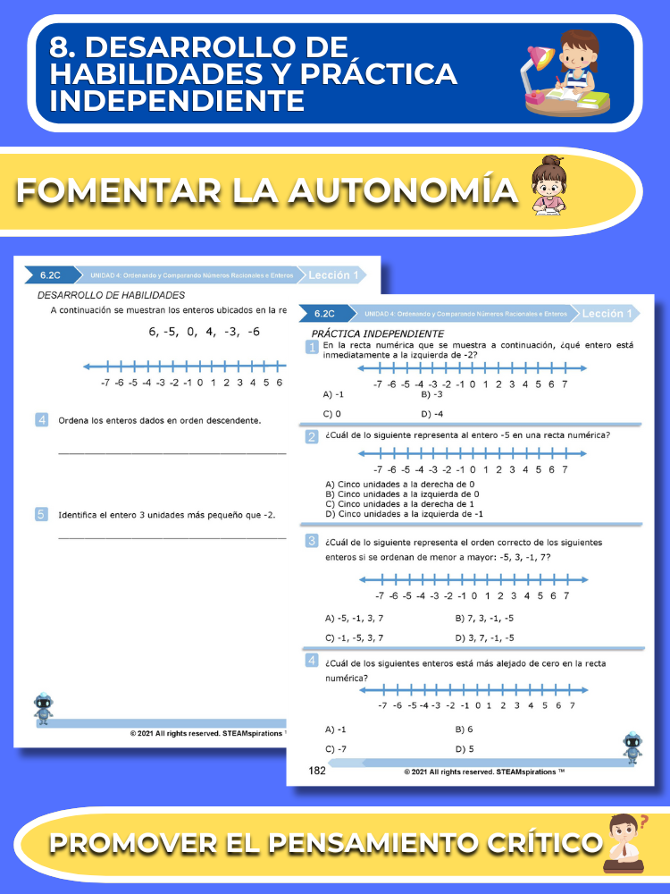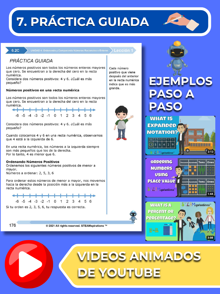 Práctica Guiada: Cada unidad incluye secciones de práctica guiada diseñadas para enseñar efectivamente nuevos TEKs/Habilidades. Estas se pueden utilizar junto con nuestros atractivos videos de instrucción animados, mejorando la experiencia de aprendizaje.