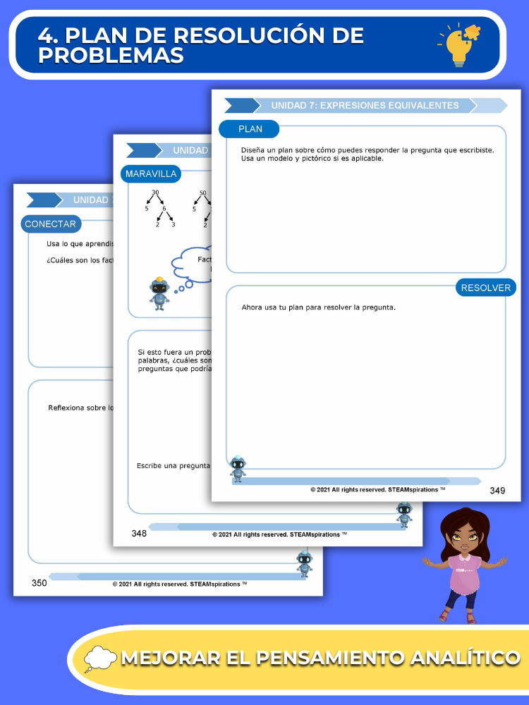 Proceso de Resolución de Problemas: Cada unidad presenta a los estudiantes un proceso de resolución de problemas que provoca curiosidad y mejora las habilidades de pensamiento analítico.
