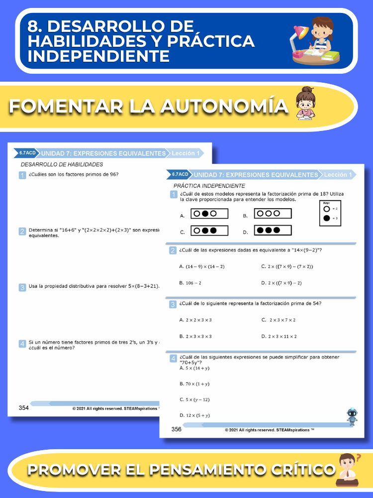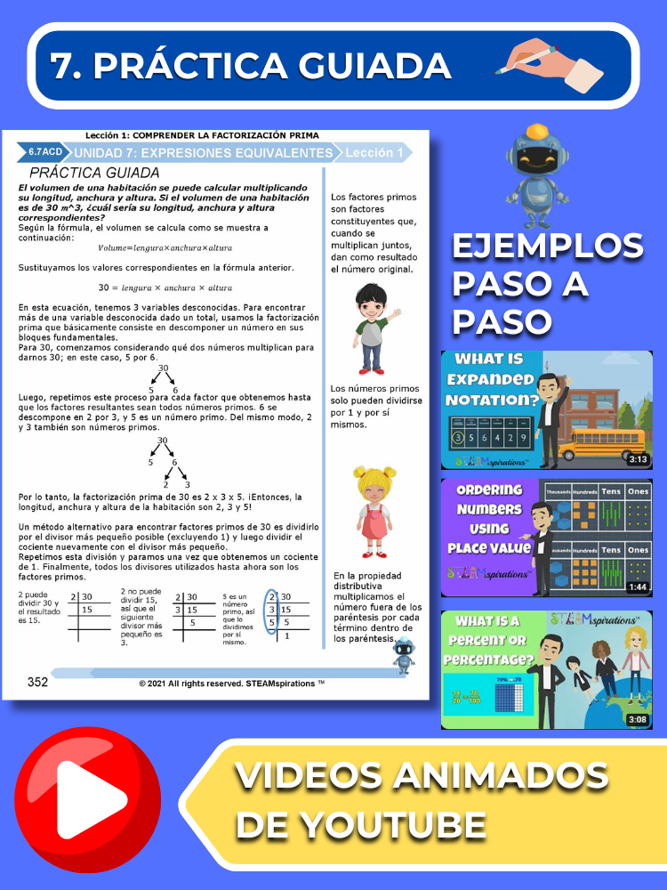 Práctica Guiada: Cada unidad incluye secciones de práctica guiada diseñadas para enseñar efectivamente nuevos TEKs/Habilidades. Estas se pueden utilizar junto con nuestros atractivos videos de instrucción animados, mejorando la experiencia de aprendizaje.
