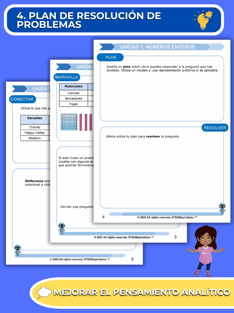 Proceso de Resolución de Problemas: Cada unidad presenta a los estudiantes un proceso de resolución de problemas que provoca curiosidad y mejora las habilidades de pensamiento analítico.