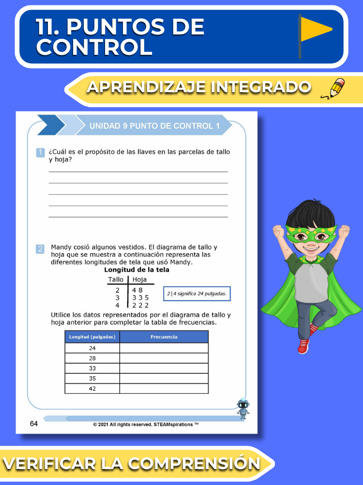 Puntos de Control: Al final de cada lección, los puntos de control incluyen un ejercicio de escritura y una pregunta de resolución de problemas para evaluar la comprensión y consolidar el aprendizaje.