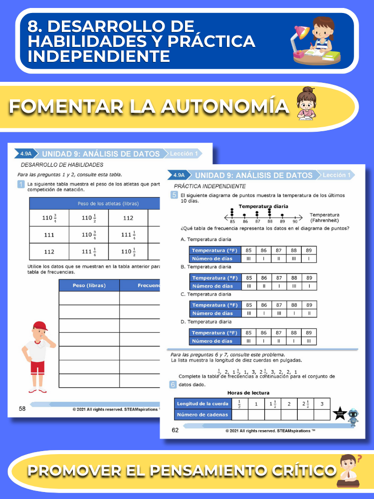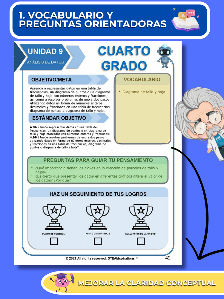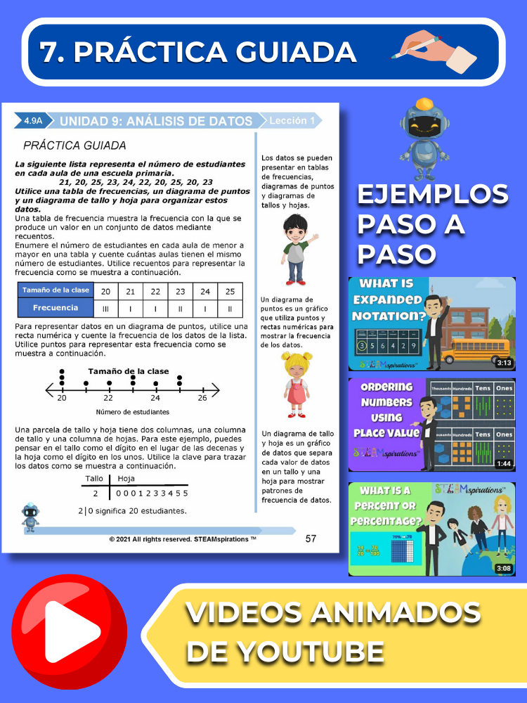 Práctica Guiada: Cada unidad incluye secciones de práctica guiada diseñadas para enseñar efectivamente nuevos TEKs/Habilidades. Estas se pueden utilizar junto con nuestros atractivos videos de instrucción animados, mejorando la experiencia de aprendizaje.