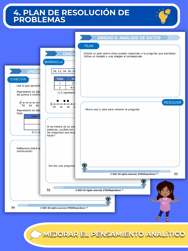 Proceso de Resolución de Problemas: Cada unidad presenta a los estudiantes un proceso de resolución de problemas que provoca curiosidad y mejora las habilidades de pensamiento analítico.