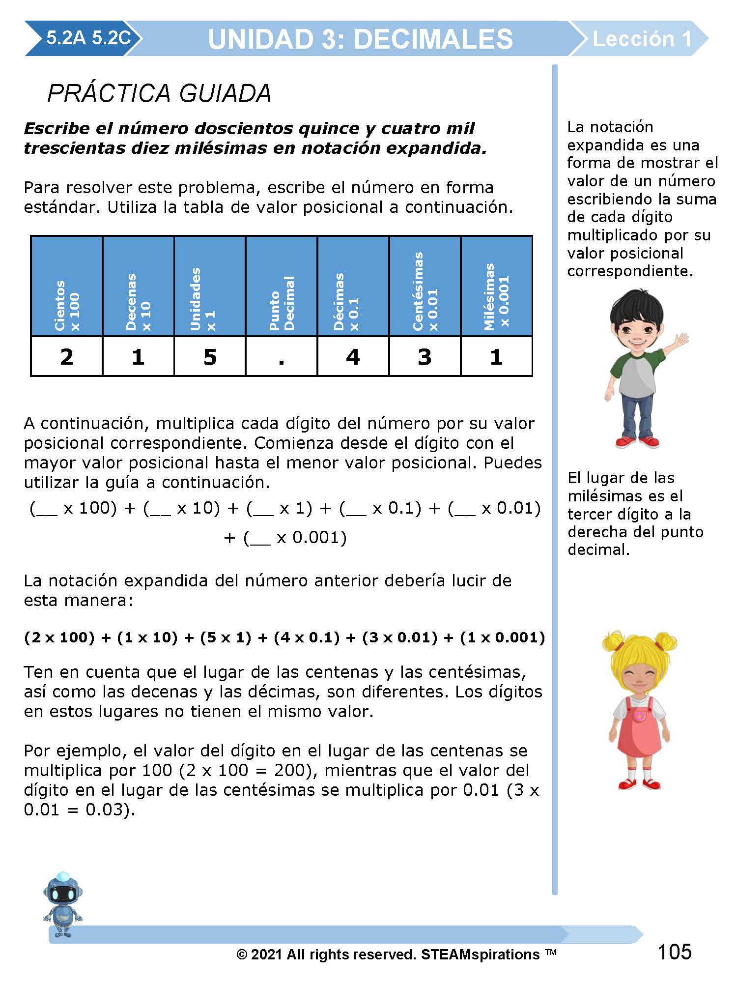 ¡Mathtástico! Paquete de Matemáticas de 5to Grado Unidad 3: DECIMALES - Libro Electrónico
