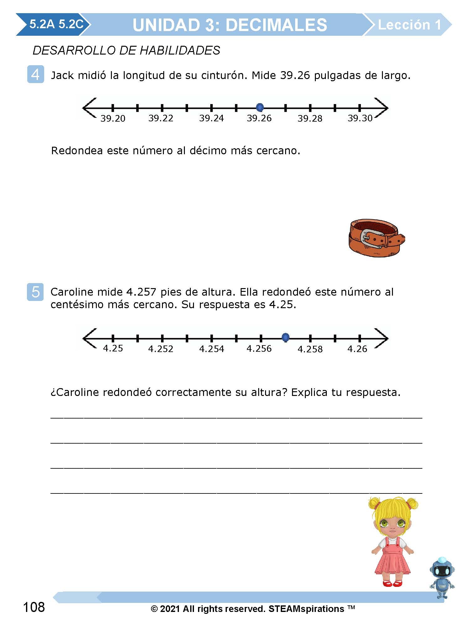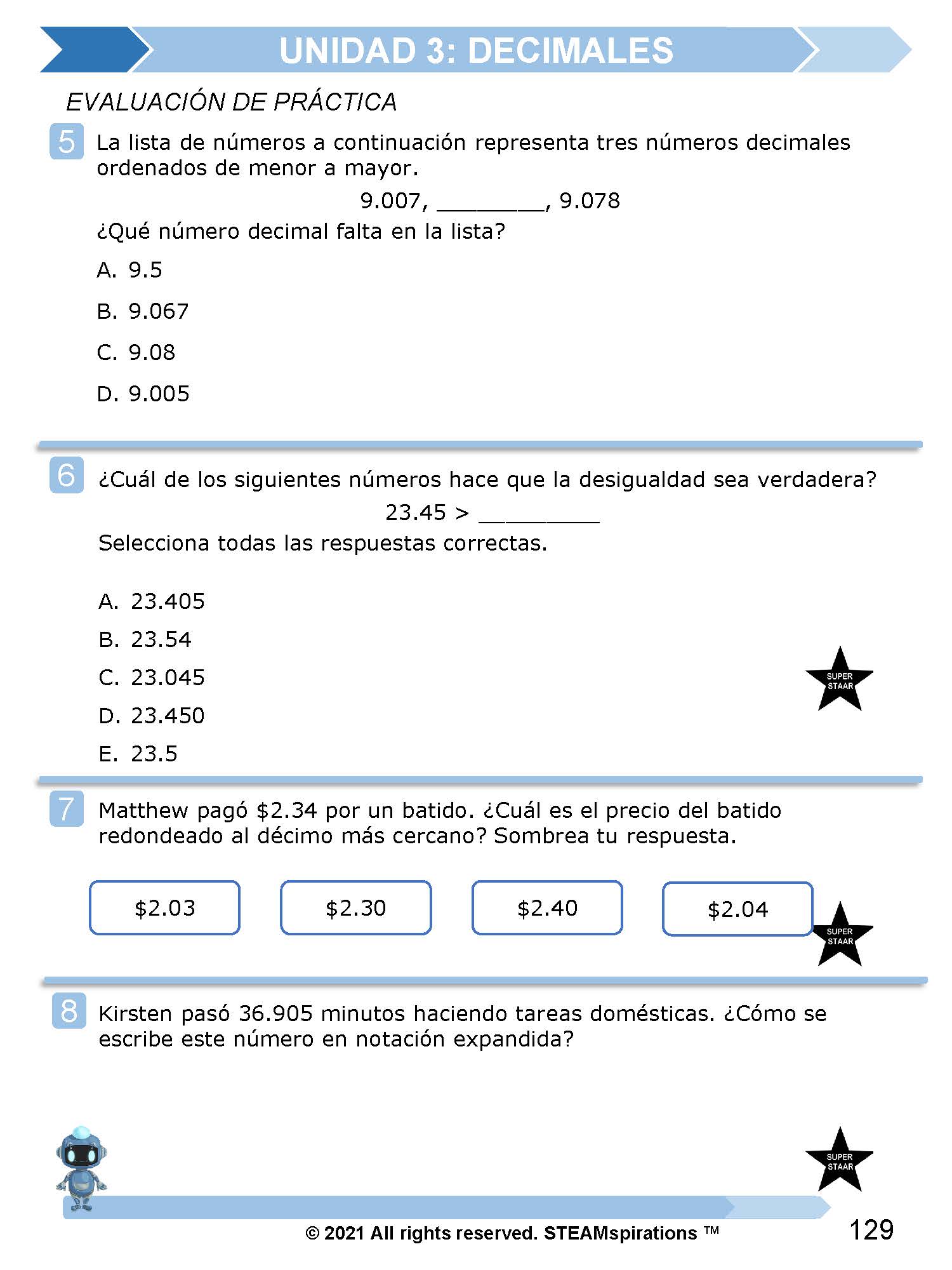 Construcción de Habilidades/Práctica Independiente: Las lecciones están diseñadas para fortalecer las habilidades matemáticas y las habilidades de resolución de problemas de los estudiantes a través de problemas de palabras, incluyendo preguntas STAAR 2.0 marcadas con un pequeño símbolo de estrella.