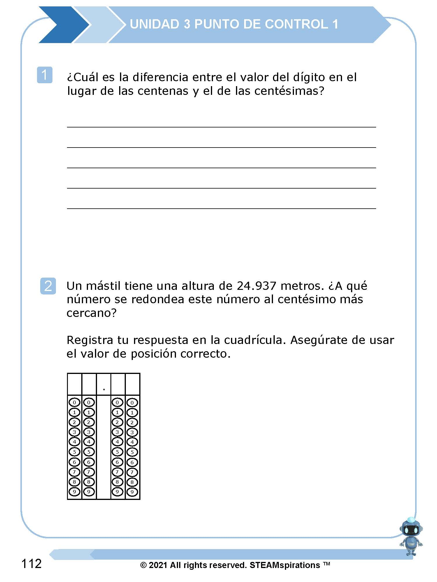 Puntos de Control: Al final de cada lección, los puntos de control incluyen un ejercicio de escritura y una pregunta de resolución de problemas para evaluar la comprensión y consolidar el aprendizaje.