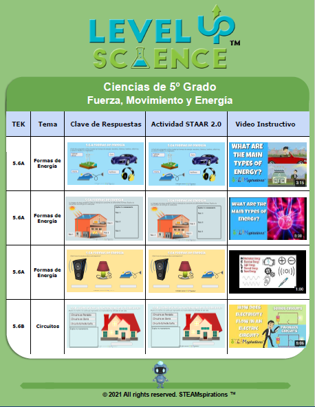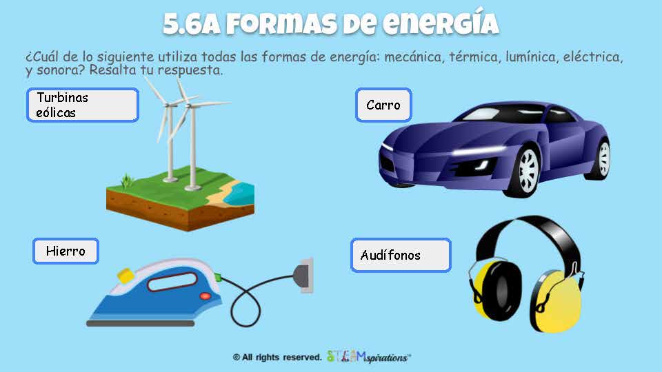 - 5.6A Explora los usos de la energía, incluyendo la energía mecánica, de luz, térmica, eléctrica y de sonido