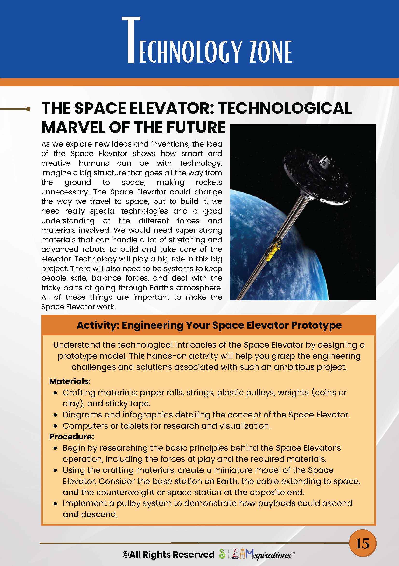 - Space Elevator Wonders: Explore the world of the Space Elevator, discovering its intriguing features while enjoying activities related to your workbook subjects.
