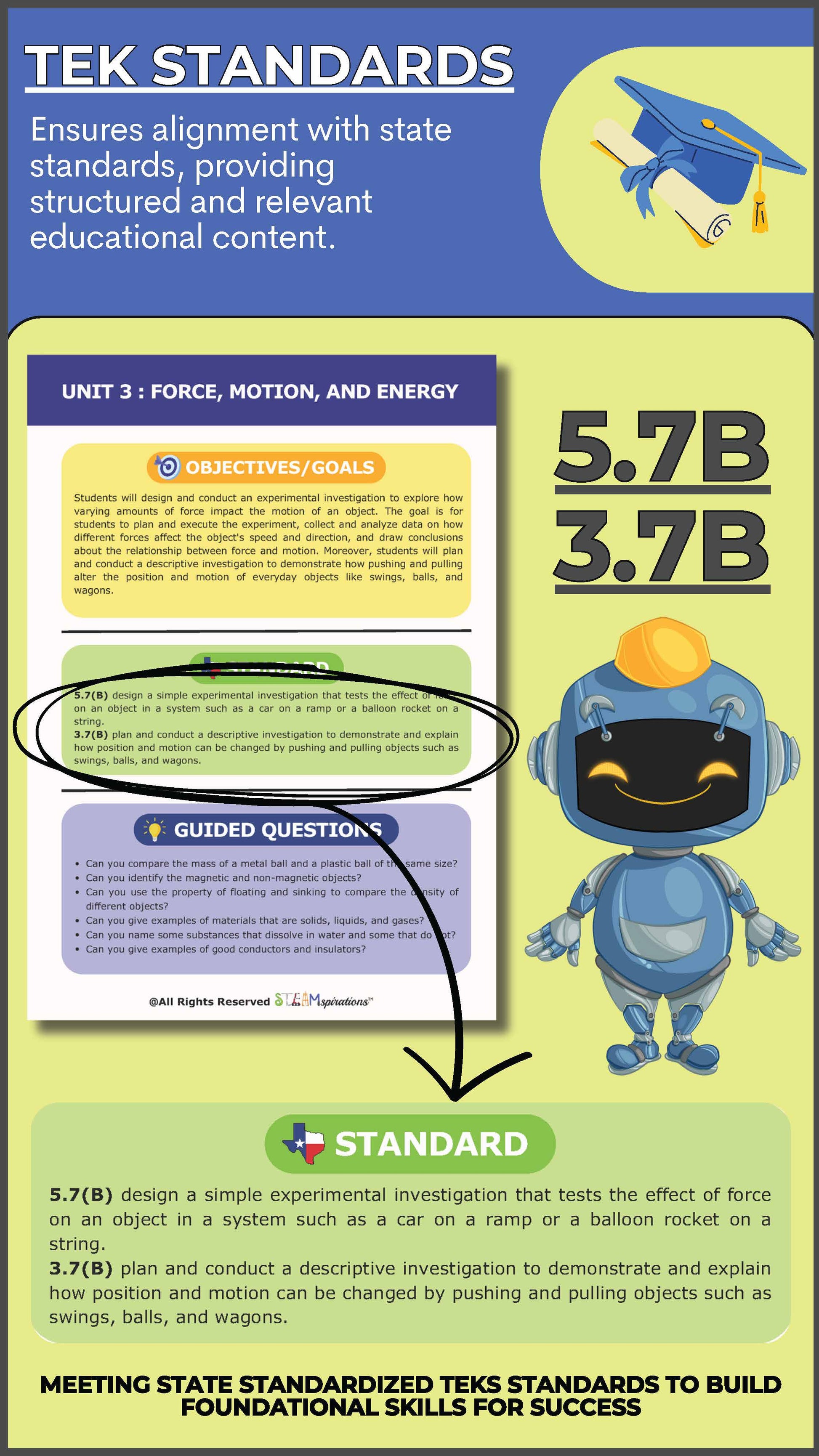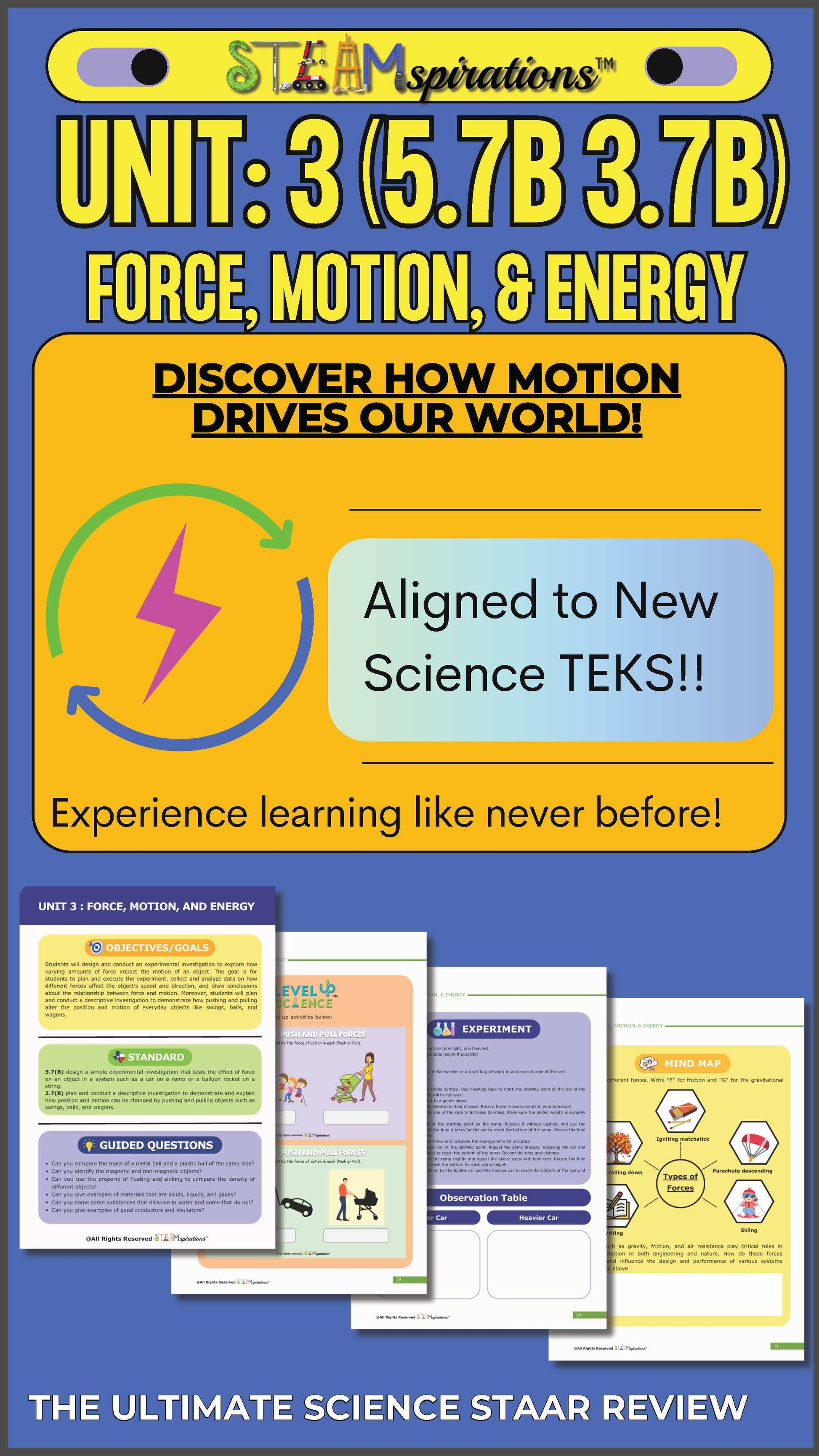 Empower 5th-grade students to explore the fascinating world of forces, motion, and energy through hands-on experiments, real-world applications, and innovative STEM-focused learning. Aligned with updated TEKS standards, this curriculum provides a structured and immersive approach to understanding core scientific principles.
