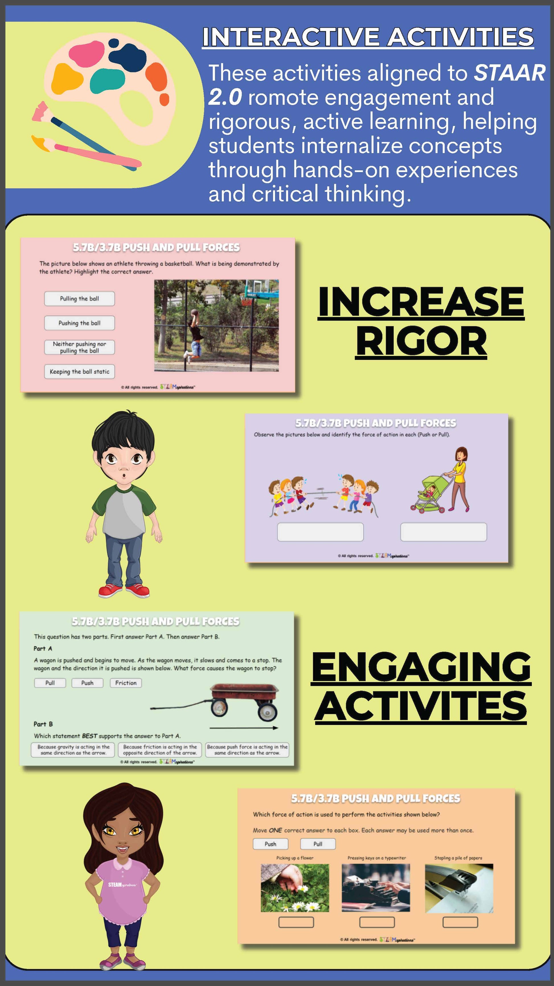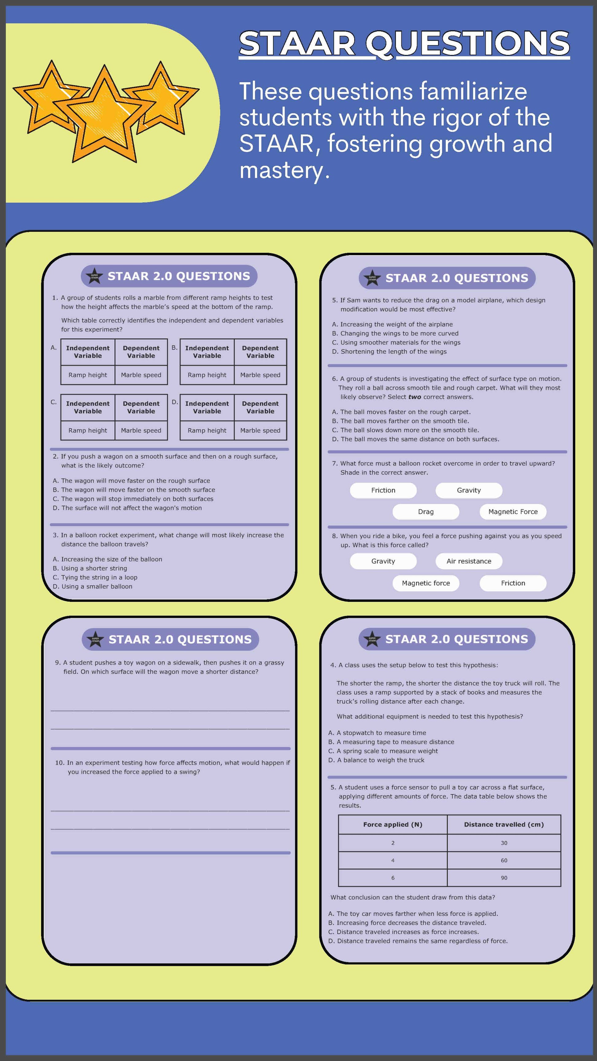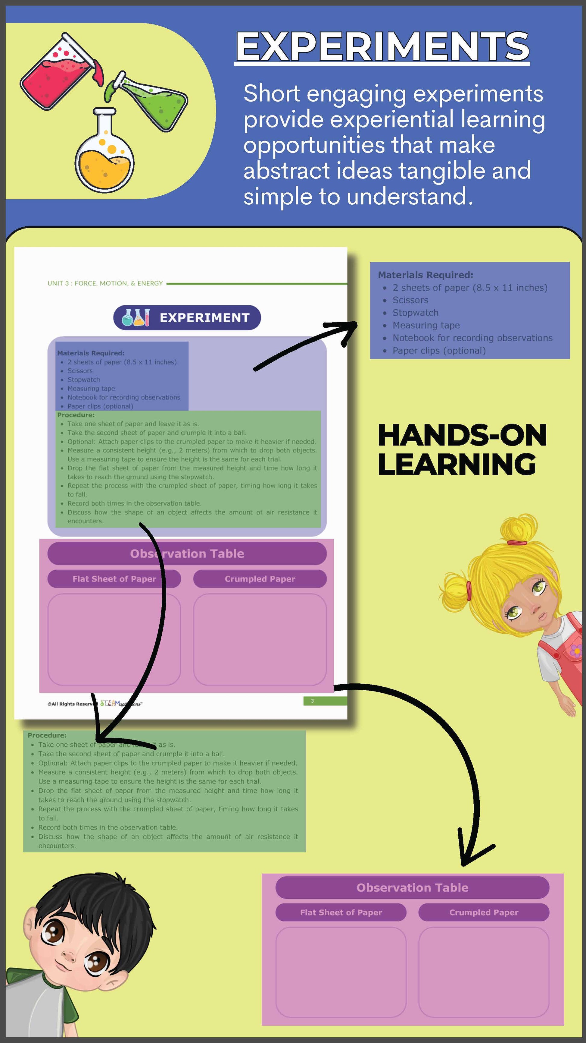 Concepts are introduced step-by-step, with scaffolded activities and guided experimentation to ensure students fully grasp the principles of forces and motion.