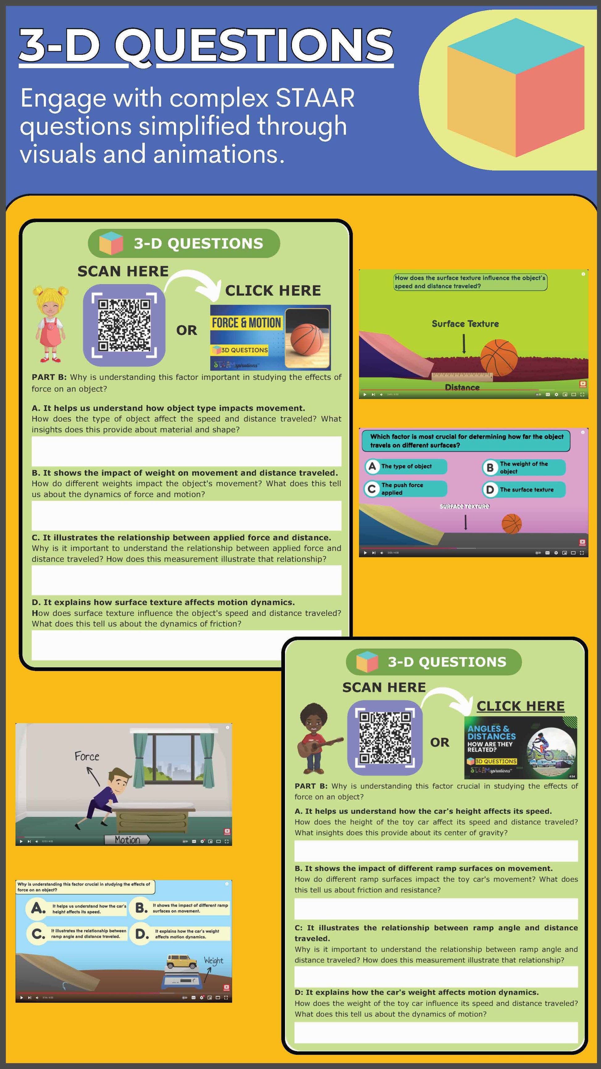 Incorporating 3-D questions, students will analyze real-world scenarios, predict outcomes, and test hypotheses. These guided inquiries encourage a proactive and reflective approach to understanding motion and energy.